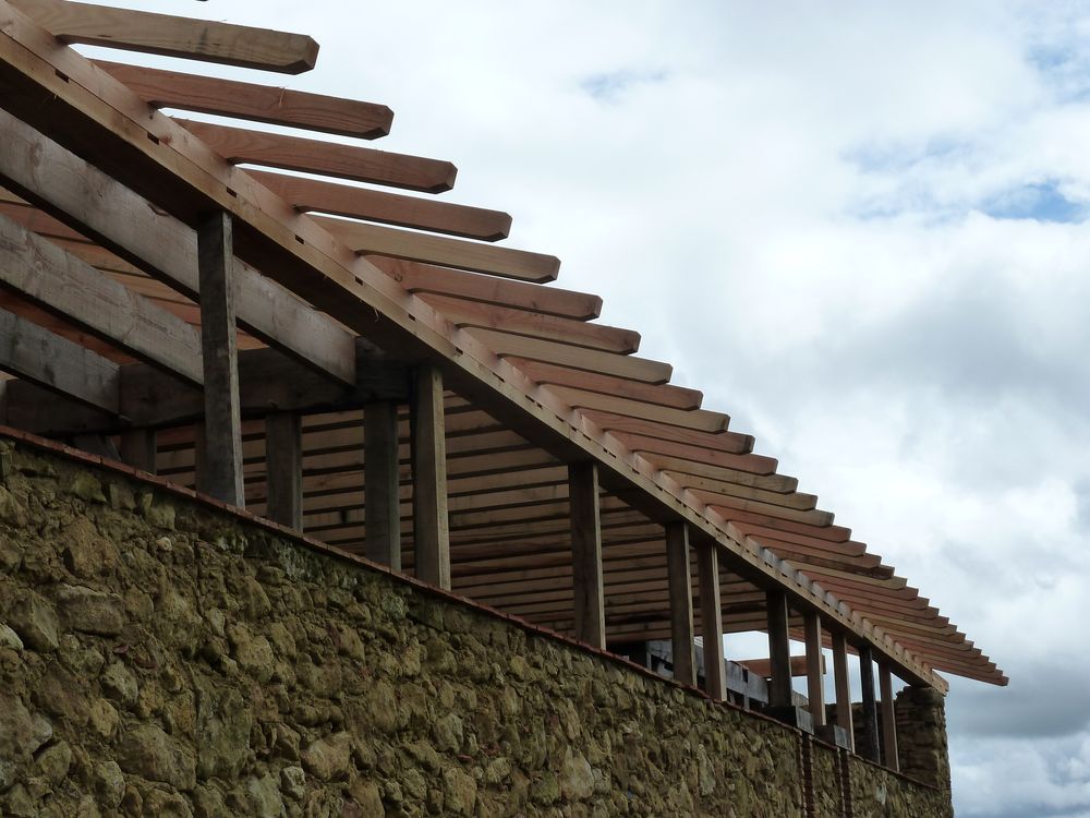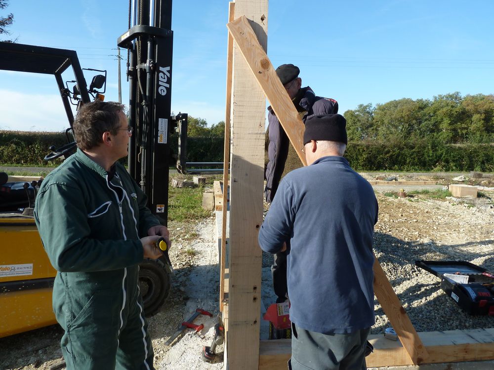 - L’ossature ainsi montée est laissée aux intempéries afin que le bois ressuie et “travaille” bien, avant de commencer les remplissages